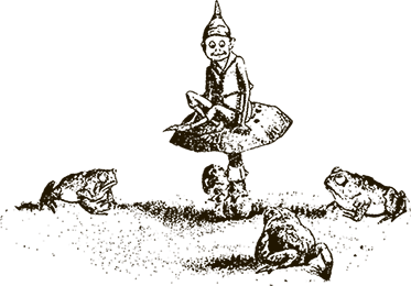 Мурзилку знает всяк из вас,И вас не удивит, конечно,Что про себя лишь каждый часЯ говорю с восторгом вечно.Я так умён, так храбр притом,Что просто всем на удивленье!Готов сразиться я с врагом,Чтоб победить в одно мгновенье.Но от опасностей, друзья,Бегу всегда весьма проворно,Я знаю всё! Профессор я!Меня все любят, все, бесспорно!Не ошибаюсь никогдаИ не болтаю я бесцельно…Малютки эльфы – те всегдаМне повинуются, и дельно!Ну, словом, всюду я знаком,Умён и храбр я, без сомненья…Всё это (вот беда-то в чём!)Есть… лишь в моём воображенье.А впрочем, это всё равно!Что я мечтаю очень пылко,Вам всем известно ведь давно…Слуга покорный вашМурзилкаЭльф и лягушки