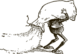 Чтобы раздобыть всё необходимое, малютки отправили гонцов в город. Материалов требовалось не много, поэтому достать всё нужное крошкам-невидимкам не составило большого труда. Самая важная задача стояла перед Всезнайкой: запастись мукой, необходимой для того, чтобы приготовить клейстер. Ловкач сумел раздобыть аж целый мешок муки, но второпях его слабо завязал и не заметил, как половина муки рассыпалась по дороге.