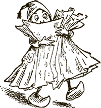 Однажды утром Мурзилка, едва проснувшись, увидел одного из лесных человечков по прозвищу Шиворот-Навыворот.
