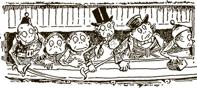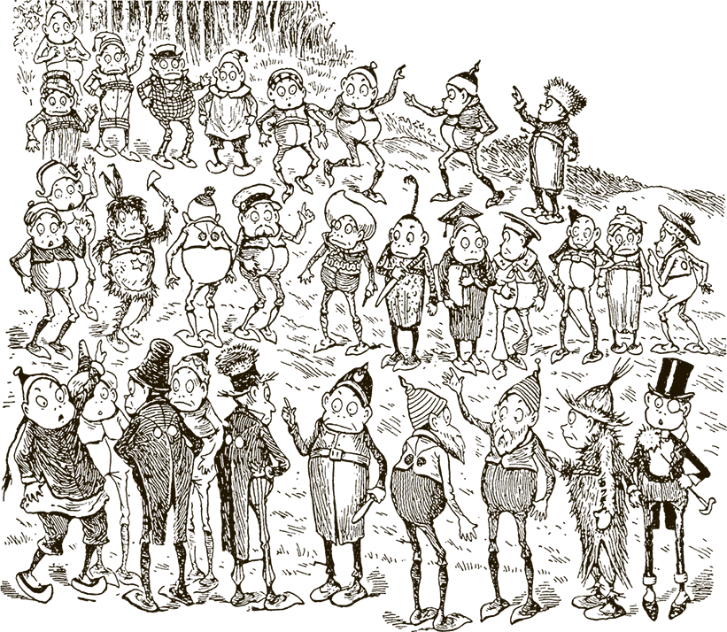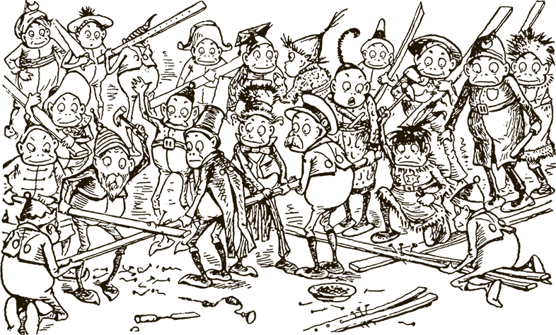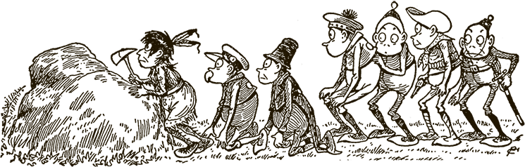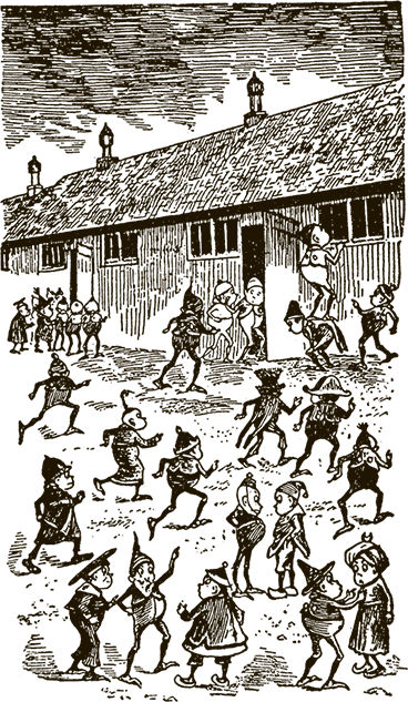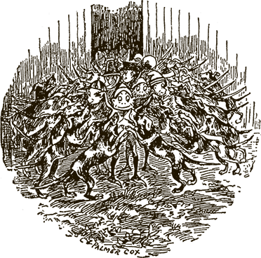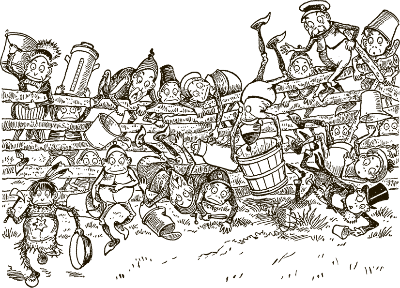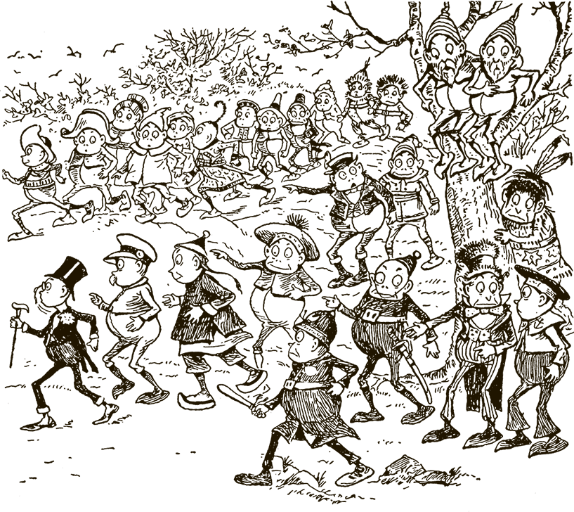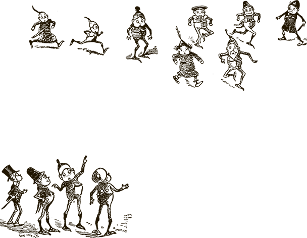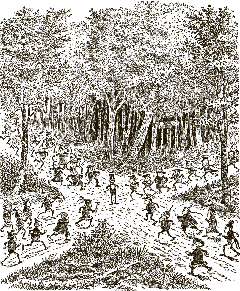 Не прошло и минуты, как малютки уже сидели на конях и мчались во всю прыть, причём на каждом поместилось по несколько крошечных седоков.