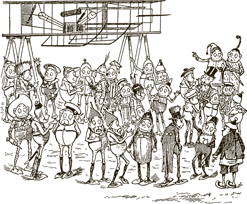Дело спорилось. Лесные человечки не привыкли возиться долго, и к вечеру на специальных подставках стоял уже готовый аэроплан.