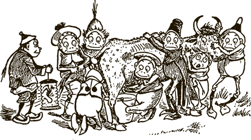 – О, не беспокойтесь, – заявил Вертушка. – Я тут недалеко видел корову. Подоим её – и молока хватит на всех.