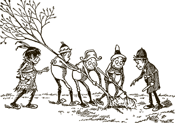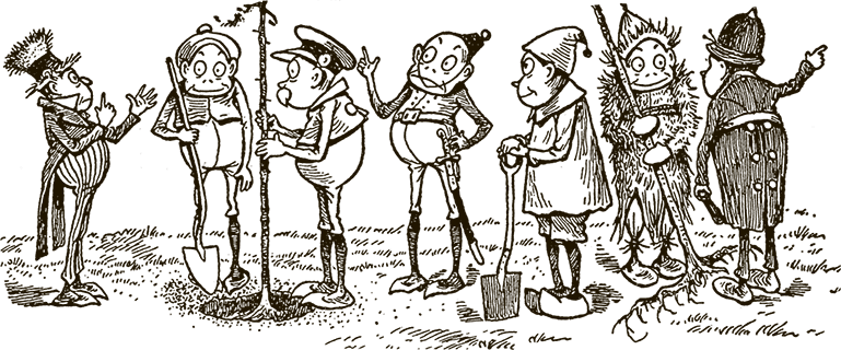 – Это вовсе не так трудно, как вам кажется, – успокоил друзей Тюбик-Мазь. – В соседнем лесу выкопаем молодые деревца, перенесём на полянку и посадим рядами наподобие аллеи. Станем за ними ухаживать, поливать – и получится превосходный парк.