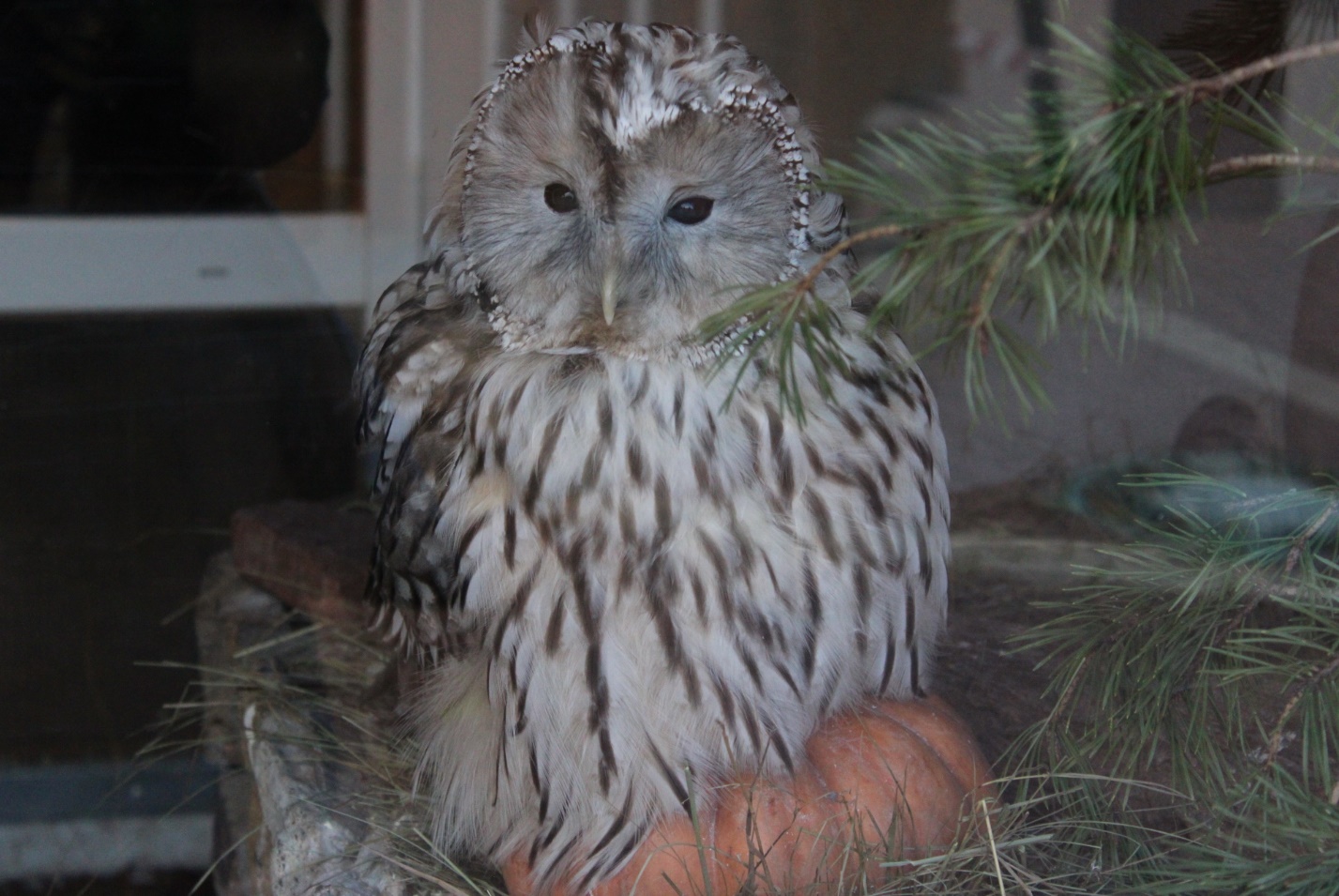 Бдительная сова встречает каждого посетителя внимательным взглядом. Совершенно невозможно пройти мимо этого очаровательного пушистого создания, сидящего на тыкве