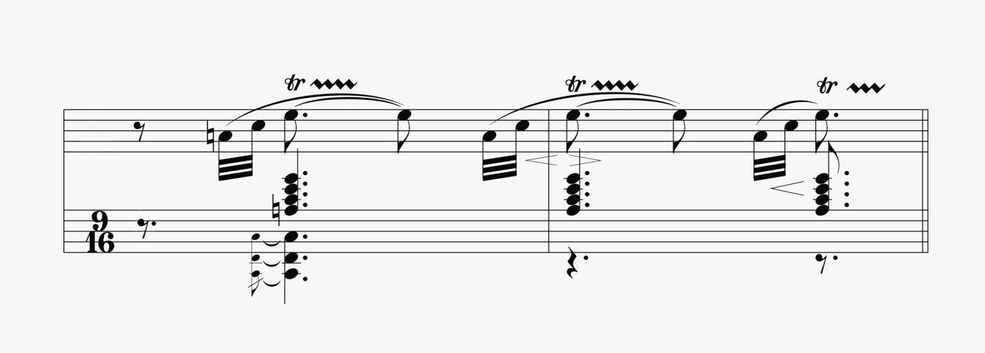 Пример 6 б – А.Н. Скрябин, Десятая соната ор. 70, вступление, «дематериализационные» трели (такты 37–38) и т.д.