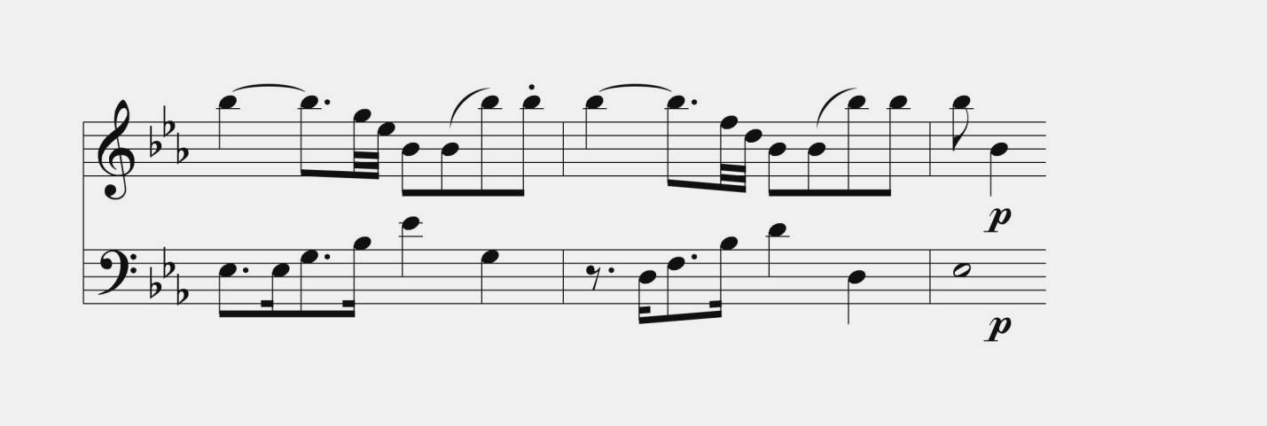 Пример 4 а – В.А. Моцарт, «Траурная масонская музыка», партии первых скрипок и басов, пунктирный ритм как отражение смелости, решительности