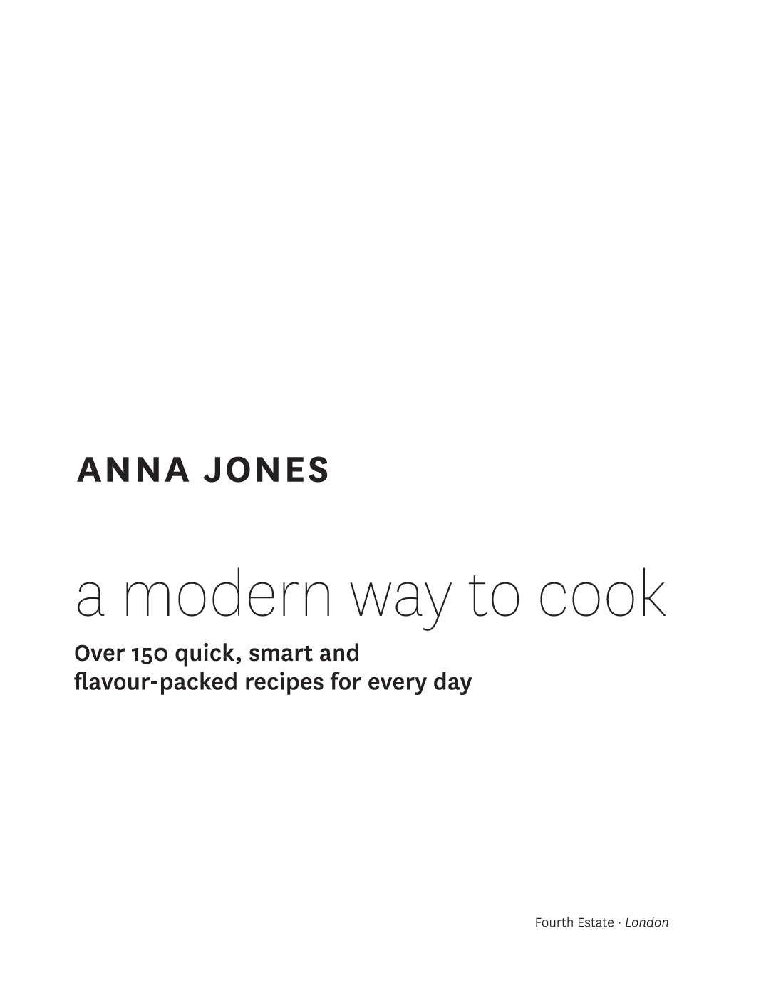 Anna Jones is a cook, food writer and stylist. She worked for many years as part of Jamie Oliver’s food team – styling, writing and working behind the scenes on books, TV shows and food campaigns – and went on to work with some of the UK’s biggest food brands and best-known chefs. She is the author of A Modern Way to Eat, widely acclaimed as a book of the year. A Modern Way to Cook is her second book. She lives, writes and cooks in Hackney, east London.