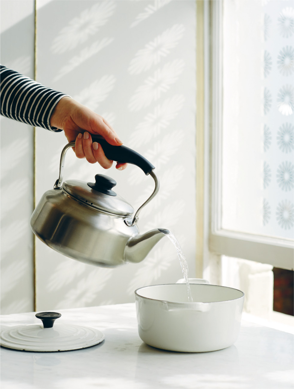 I’m going to ask you to cook on a high heat, but don’t be afraid of it. Just keep checking. I am also going to ask you to preheat your pans to get some serious heat on things that need it, and to speed things up with your kettle. It’s my best friend in the kitchen, and working with boiling water rather than cold from the tap makes everything that bit quicker.