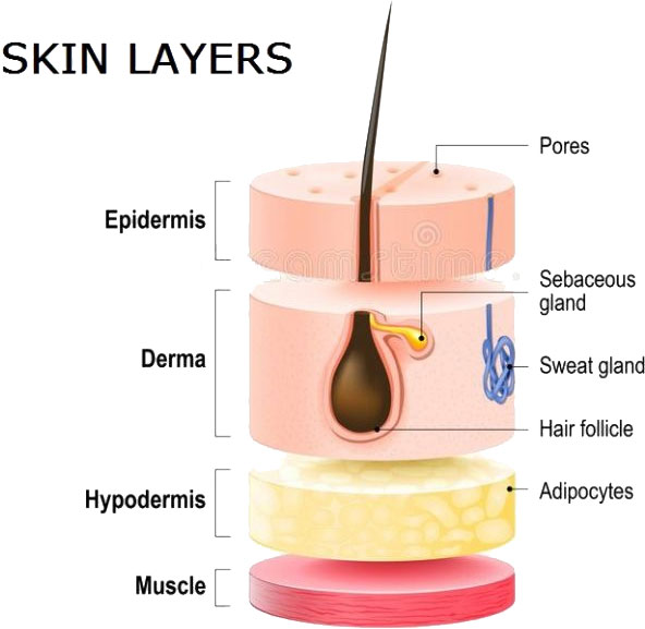 Кожа – это орган, представляющий собой наружный покров тела. Она состоит из эпидермиса, дермы и подкожно-жировой клетчатки. Если нашу кожу растянуть, то ее площадь будет = 1,5–2,3 метра. На разных участках температура кожи от 31,1 до 36 градусов. Кожа защищает нас от перепадов температуры, аллергенов, ультрафиолета, токсинов окружающей среды, испарения влаги и обезвоживания. Кожа вбирает в себя свет и превращает его в тепло. Кожа – индикатор суммарного состояния всего организма.