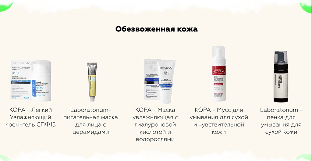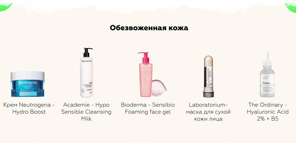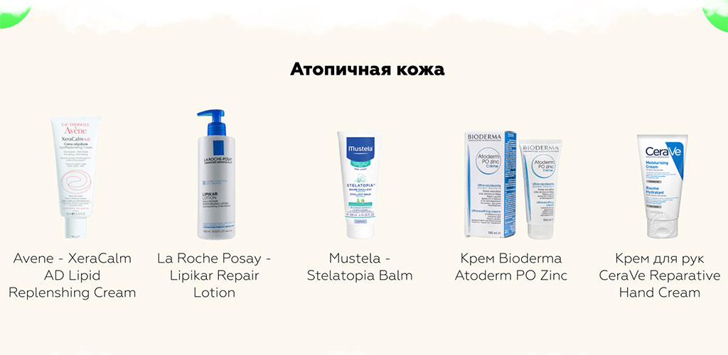 Но мы с вами говорим про уход, поэтому при АД стоит придерживаться минималистического подхода. Из-за того, что барьерные функции кожи нарушены, она очень восприимчива к проникновению в нее разных, не всегда полезных веществ. Поэтому самих средств должно быть немного, а их составы должны быть предельно короткими и не включать ароматизаторов и красителей. Очевидно, что лучше выбирать косметику, которая специально предназначена для крайне сухой и атопичной кожи. Найти такую проще всего в аптеке.