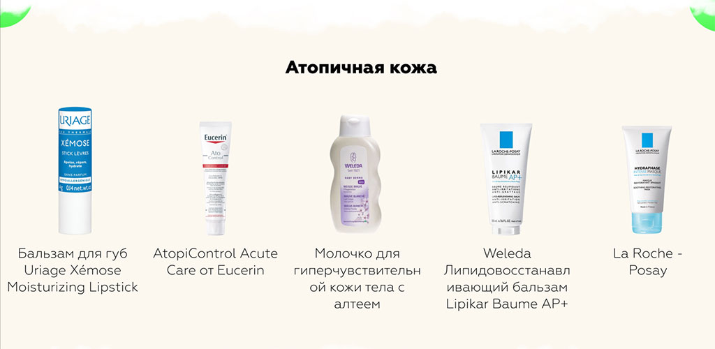 Места натуральной косметике в уходе для атопиков тоже нет, потому что натуральные экстракты и эфирные масла – сильные аллергены и, скорее всего, вызовут не самые хорошие реакции на коже.