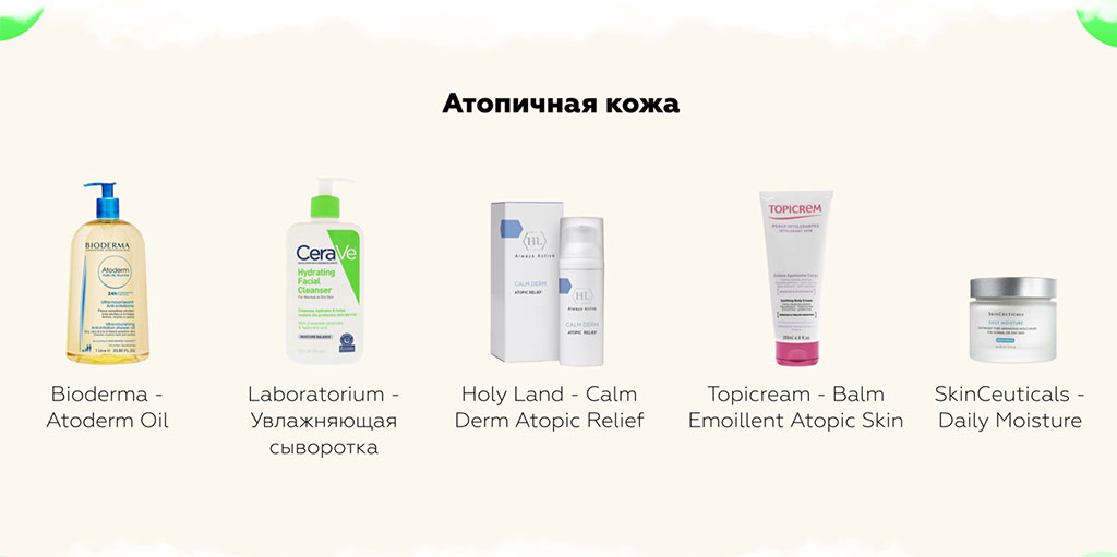 Косметика с активными ингредиентами очень редко подходит для атопичной кожи, потому что приносит больше вреда, чем пользы. Попробовать, конечно, можно, но сыворотки с витамином С, ретиноидами и прочими подобными веществами вам, скорее всего, не подойдут. Как и средства с высоким содержанием спирта.