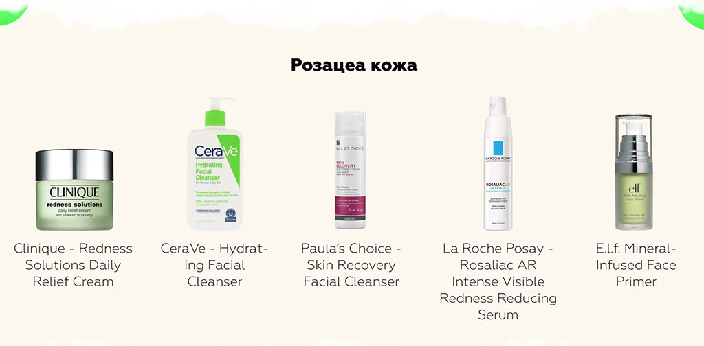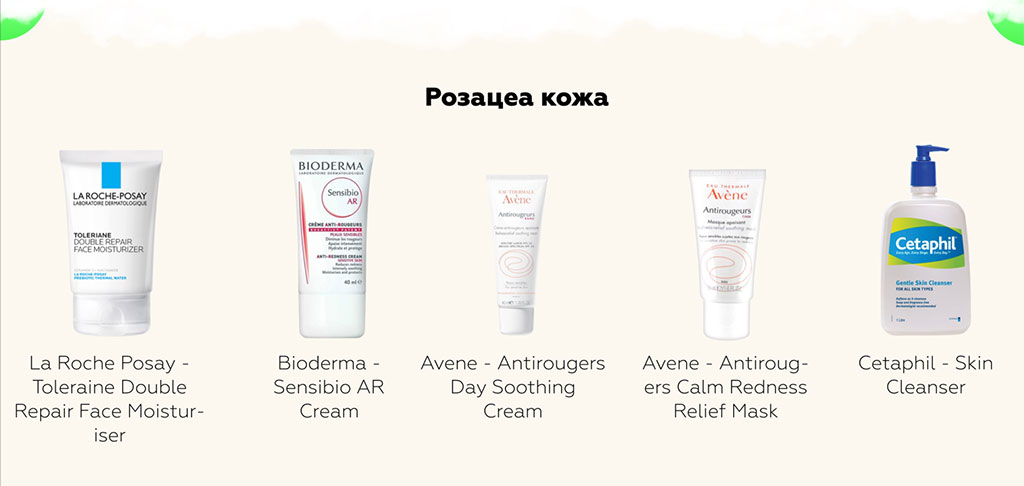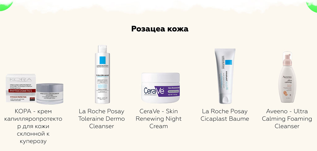 При уходе за кожей с розацеа также исключаются щетки и скрабы для умывания, весь уход переходит в щадящий режим.
