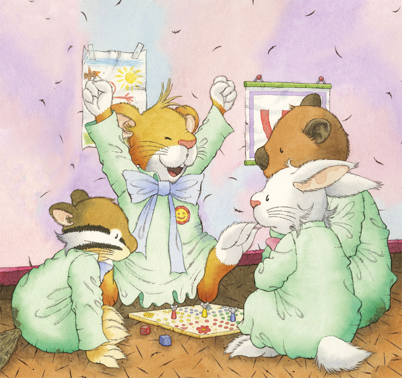 А дело в том, что эта игра для четверых. Без Тима играть не получится. Но мышонку всё равно. Он расстроился и на друзей даже не смотрит.