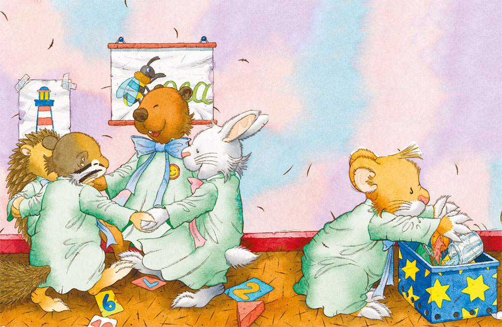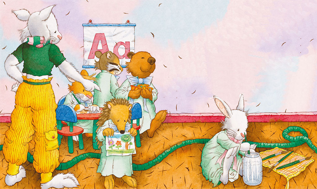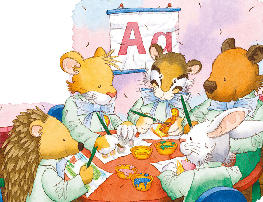 Мышонок Тим очень любит ходить в детский сад. Там у него много друзей: хомячок Хьюго, ежишка Тесса, крольчишка Фипси и барсучок Диди. А ещё в детском саду всегда много интересного. Сегодня, например, они рисуют акварелью.