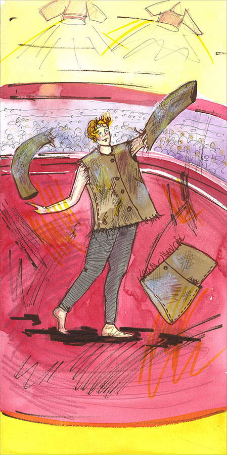 Жиль танцевал ещё быстрее, запрыгал по арене и ногами запутался в своём костюме.