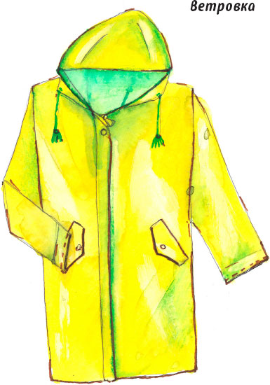 – Никакой я не дождевик! Я – ветровка! Да, может быть, я и похожа на дождевик, такая же свободная и имею капюшон, но у меня ко всему прочему есть резинки внизу и на рукавах. Они не дают ветру попасть внутрь. Вот почему я зовусь ветровкой.