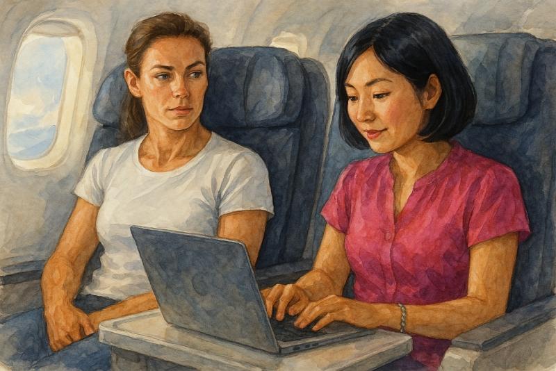 Полет тянулся как вязкий мед – медленно, плавно и усыпляюще. Цвет неба в иллюминаторе постепенно сменился с бледно-синего на пронзительно-голубой. Не было ни облаков, ни земли – только слепящий свет и ровный гул двигателей.