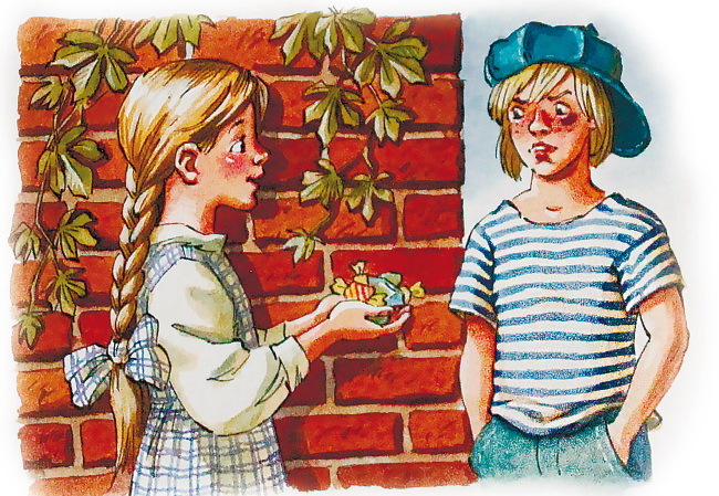 На следующий день она снова подошла к Гене и угостила его конфетами. Сорванец выхватил конфеты и был таков! Вечером при встрече во дворе Вера предложила Гене свою книжку.