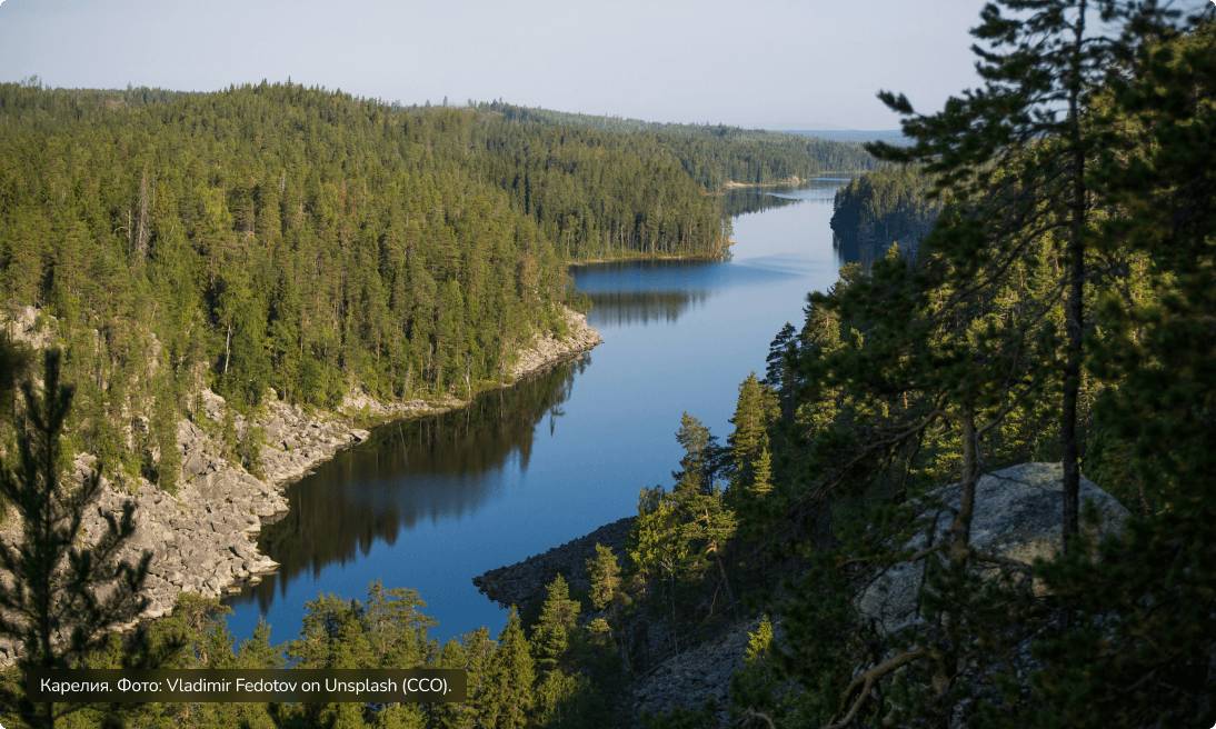 Лес покрывает 52% Карелии, образуя непроходимые, но в то же время завораживающие зеленые массивы. Эти древние леса выступают домом для множества видов дикой природы и птиц. Лесные тропы и парки предлагают условия для пеших прогулок, походов и наблюдения за природой.