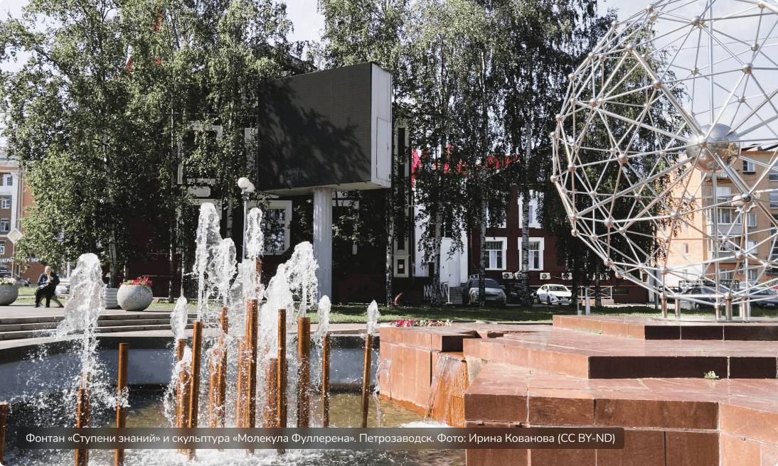 Напротив головного корпуса университета находится фонтан «Ступени знаний» и скульптура «Молекула Фуллерена». Этот арт-объект – одна из самых необычных и модных городских достопримечательностей.