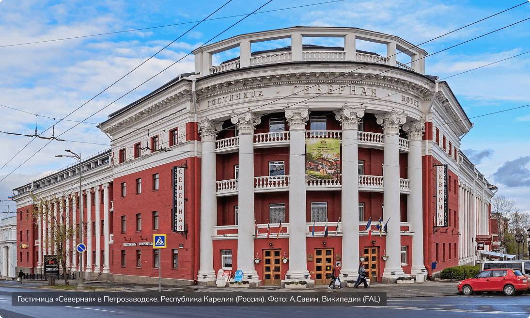 Гостиница Северная 4*. Отель расположен в 800 м от центра Петрозаводска в шаговой доступности от музеев и театров. Номера оборудованы необходимыми для комфортного пребывания удобствами, включая кондиционер, холодильник, телевизор, фен и сейф. На территории есть ресторан, бар, тренажёрный и конференц-зал, а также сад. Предоставляется прокат автомобилей и бесплатный Wi-Fi.
