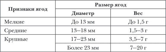 1. Величина. Для установления этого параметра надо выбрать саму крупную ягоду, измерить ее длину от вершины до основания и диаметр в самой широкой части, после чего результаты суммировать и разделить пополам. Результат этих действий и будет являться размером ягоды (табл. 1). В соответствии с тем, насколько полно виноградные кусты обеспечены водой, светом, питанием, насколько благоприятны состав почвы, погодные условия, велика мощность лоз, их нагрузка, насколько качественным было опыление, размер ягод может варьироваться даже в пределах одного сорта.