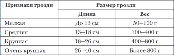 Величина и масса грозди определяется сортом и условиями, в которых она закладывается (табл. 2).
