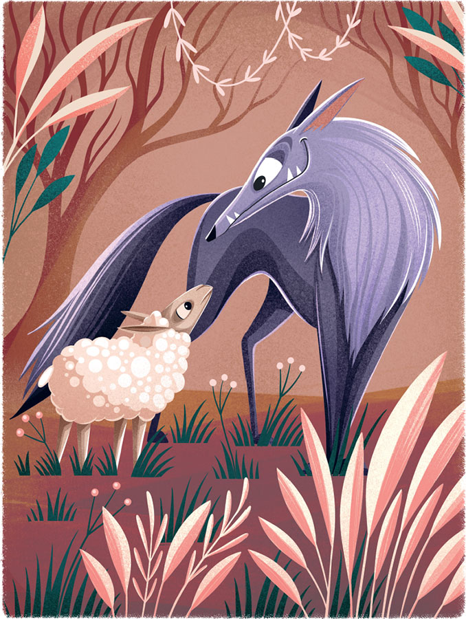 Однажды волк наткнулся на добычу, оставленную каким-то охотником под деревом. Что за прекрасный выдался денёк! Он стащил тушу и устроил себе пир, достойный настоящего короля. Затем, сытый и довольный, волк отправился прогуляться по лесу. На пути он встретил овечку, отбившуюся от стада. Завидев волка, несчастное создание перепугалось до полусмерти и не могло сдвинуться с места. Ведь всем известно, что волк – ненасытный хищник. Так что, отчасти по зову инстинкта, отчасти чтобы его продолжали бояться, он прыгнул на овечку и зажал её в лохматых лапах. Но увидев, как она дрожит, волк понял, что совершенно не голоден и только совсем недавно объелся до отвала. Как же быть? Какое оправдание придумать тому, что он отпустит её? Ведь иначе лесные звери усомнятся, что он свирепый зверь. И волк нашёл весьма оригинальное решение. Он сказал овечке: