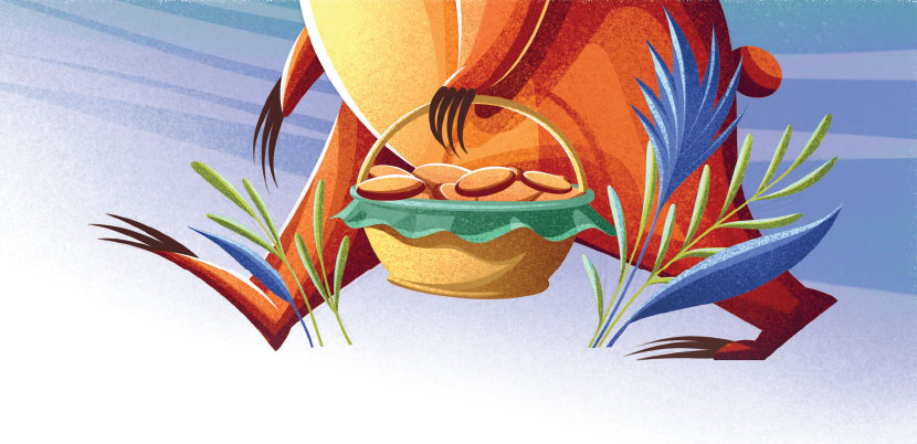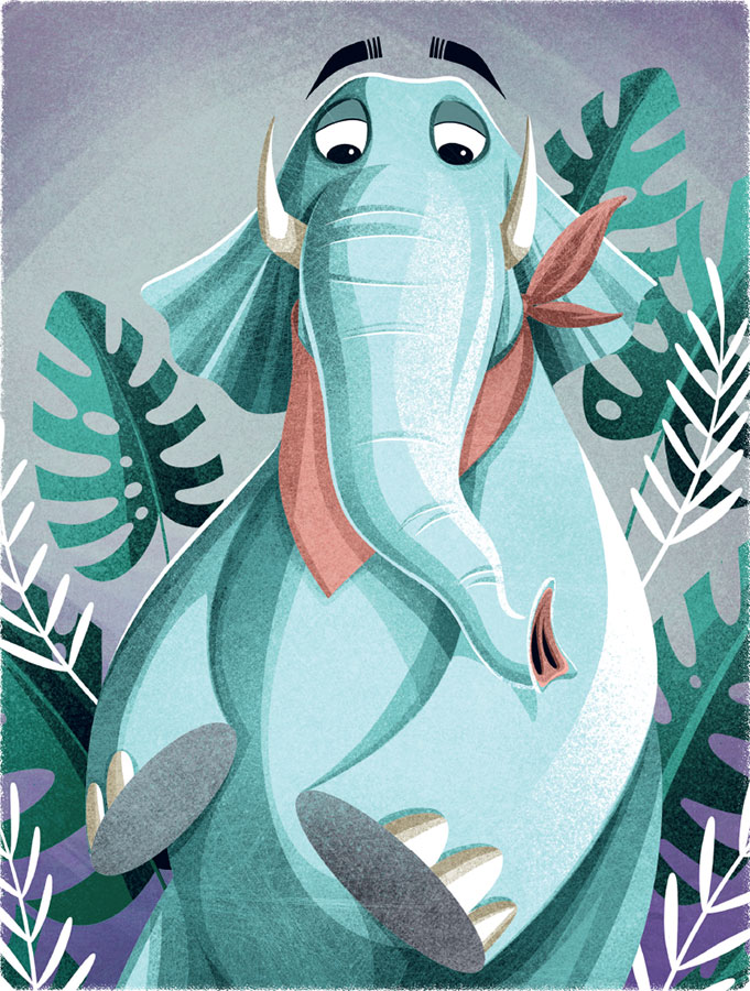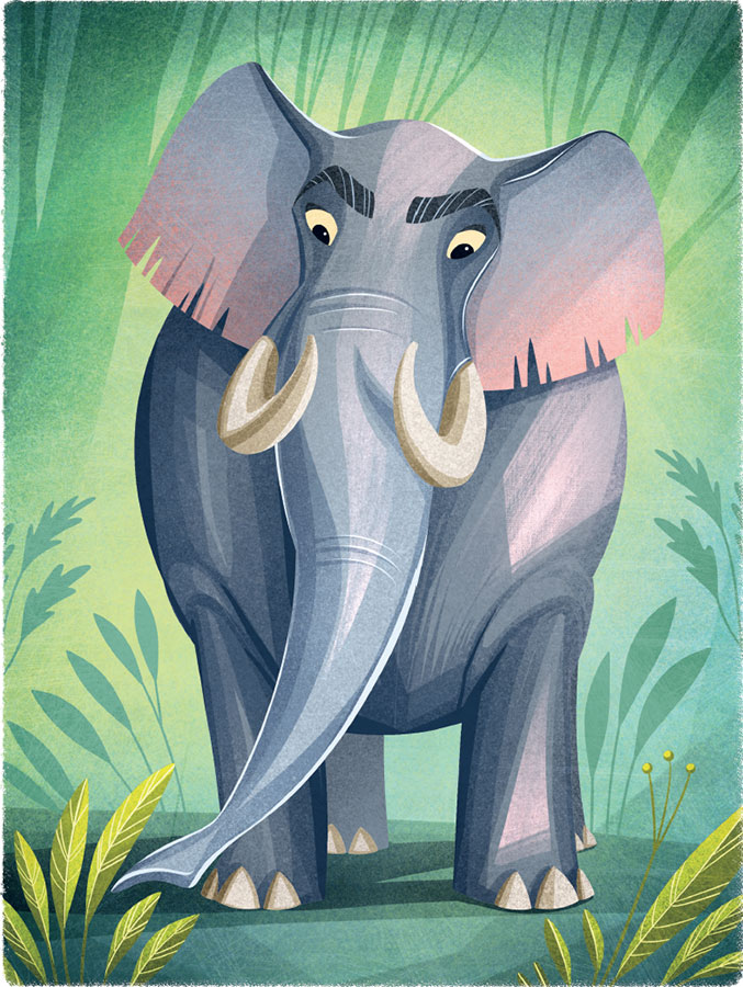 Они устроили на полянке шикарный банкет и пригласили слона как почётного гостя. Он явился вовремя, важный, как никогда. Недолго думая (и никого не поблагодарив), он направился к еде и принялся набивать брюхо. Слон съел так много, что его раздуло до невероятных размеров. Все звери поглядывали на него из-за кустов и хихикали.