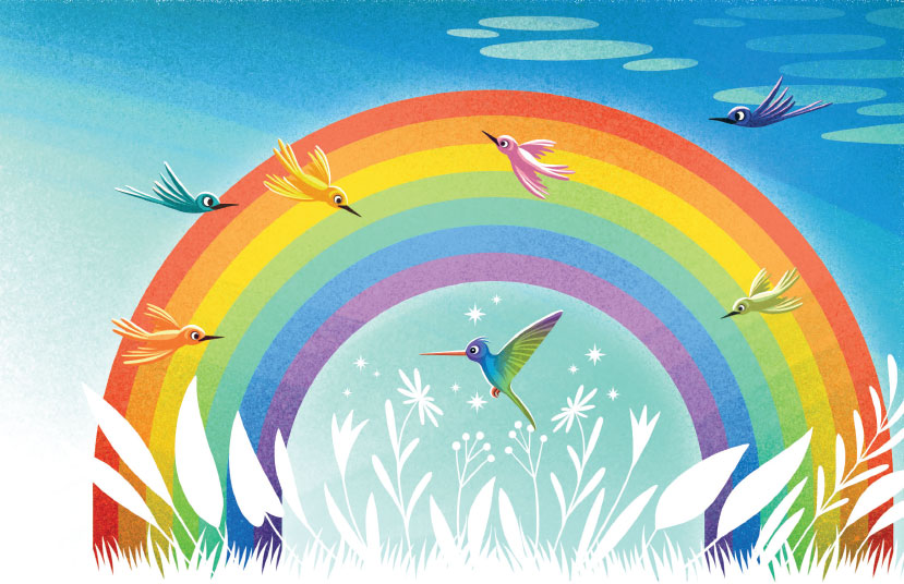 А как же колибри, которая не умела летать высоко и не могла нырнуть в радугу? Не переживайте! О ней позаботились цветы и в знак дружбы подарили ей немного своих красок. Теперь вы знаете, почему у колибри одни из самых ярких пёрышек в мире.