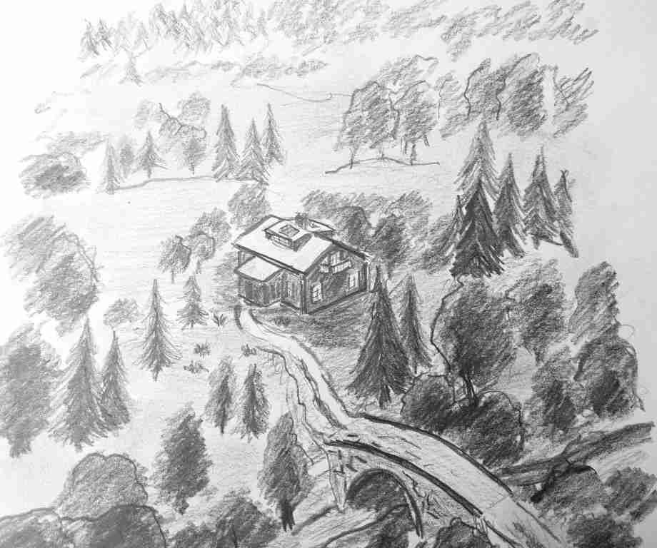 Первые впечатление были очень приятные. Дом представлял собой весьма скромный, но очень красивый коттедж. Стены были темно-вишневого цвета с белыми квадратными полуколоннами по углам. Крыша тоже была белого цвета, но мне была видна только окантовка. Вход представлял собой небольшую прихожку. Второй этаж был сделан в виде мансарды с небольшим балконом. Вокруг дома никакого забора не было. Деревьев тоже было не так много. Все казалось очень красивым. Небольшой домик в тихом уголке посреди тайги. Настоящая мечта интроверта.