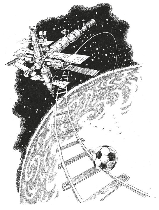 Константин Эдуардович гонит велосипедвверх по калужским улицам, по сиротской своей стране.И смешки соотечественников растекаются по спине,впадая Окою в дождём разведённый свет.Гимназической парты чёрная изрезанная доскане похожа с виду на стартовый стол ничуть.«Я ещё научусь, – он думает, – научуэтих сытых лабазников видеть за облака,чуять звёзды, что скованны душной суконной мглой»Кумачовой осенью много осыплется листьев, но больше – лиц.В дождевом дребезжании гнутых велосипедных спицглухая эпоха расслышит ракетный вой.Константин Эдуардович льнёт к слуховой трубе,словно мальчик, что ищет в ракушке шорох далёких волн.Но в ответ получает не то погребальный звон,не то слово «вечность», не то немоту небес.Велосипед взлетает. Внизу, под ним,Березуйский овраг похож на скользкий расстрельный ров.Константин Эдуардович, ваших лучших учениковистребят другие ваши лучшие ученики…Но ему всё равно. Он мудрый воздушный змей.Реактивный двигатель. Металлический дирижабль.Тяготенье земное продразверзнутых калужан —лишь расчётная схема, небольшая погрешность в ней.Константин Эдуардович разгоняет свой драндулет.Прямо по курсу – звёзд болотные огоньки.А на дне оврага светятся бессмертники и васильки,безотчётно радуясь, что их в этой схеме нет.с той стороны
