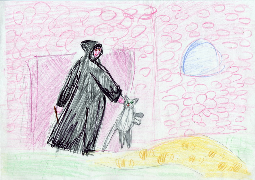 Это был ни кто иной, как Люций – злой и коварный колдун. Он был искусным волшебником, и его главной целью было стать владыкой Заколдованного леса, а потом и всего мира. Для начала Люций решил поближе узнать обитателей лесных замков и понять, кто из них на что способен, а для этого заманить их поближе к своей пещере. Для начала он похитил кота Сэма, а затем понесся к замку принцесс с письмом.
