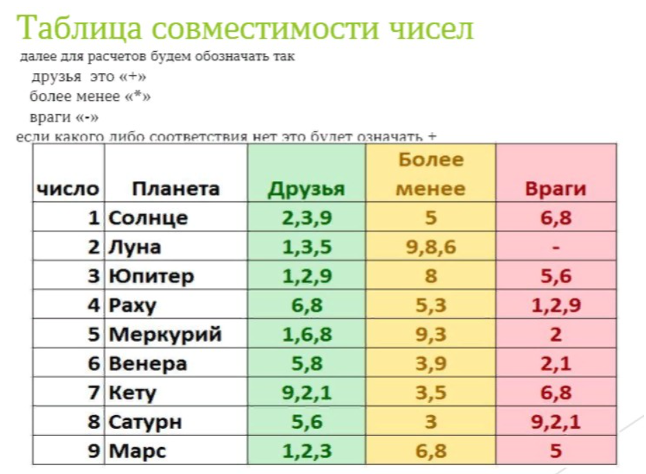 К характеристике числа подходит также всё, что касается общей характеристики чисел планет в ведической нумерологии. Подробно об этом было в первой части.