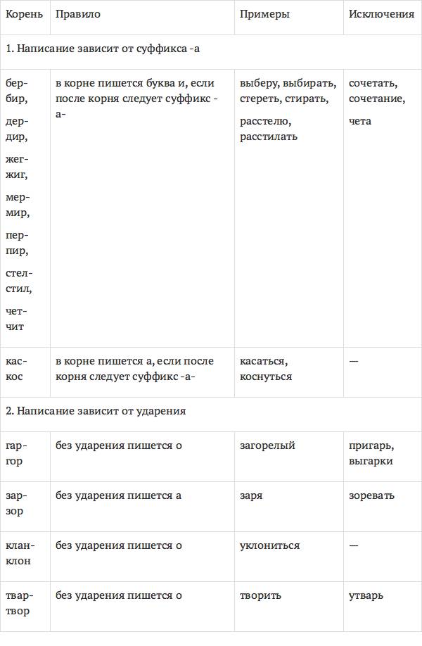 ИСКЛЮЧЕНИЯ В КОРНЯХ СЛОВ