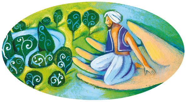 Джинн бережно опустил рыбака обратно на землю. Потом ещё раз поклонился ему и полетел куда-то над морем.