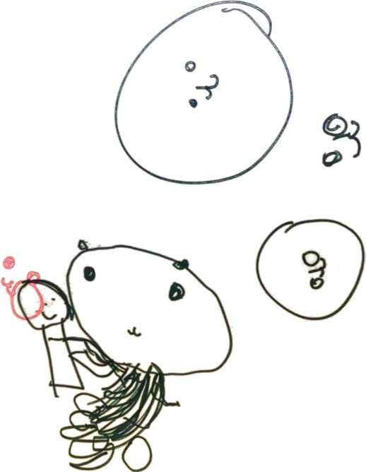 Тогда однажды мама предложила подкормить малыша, чтобы монстрику крепко спалось после маминой сказки, так же, как и самому Саше. Саша обрадовался!