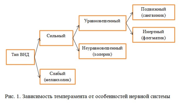 Иллюстрация 8. Зависимость темперамента от особенностей нервной системы