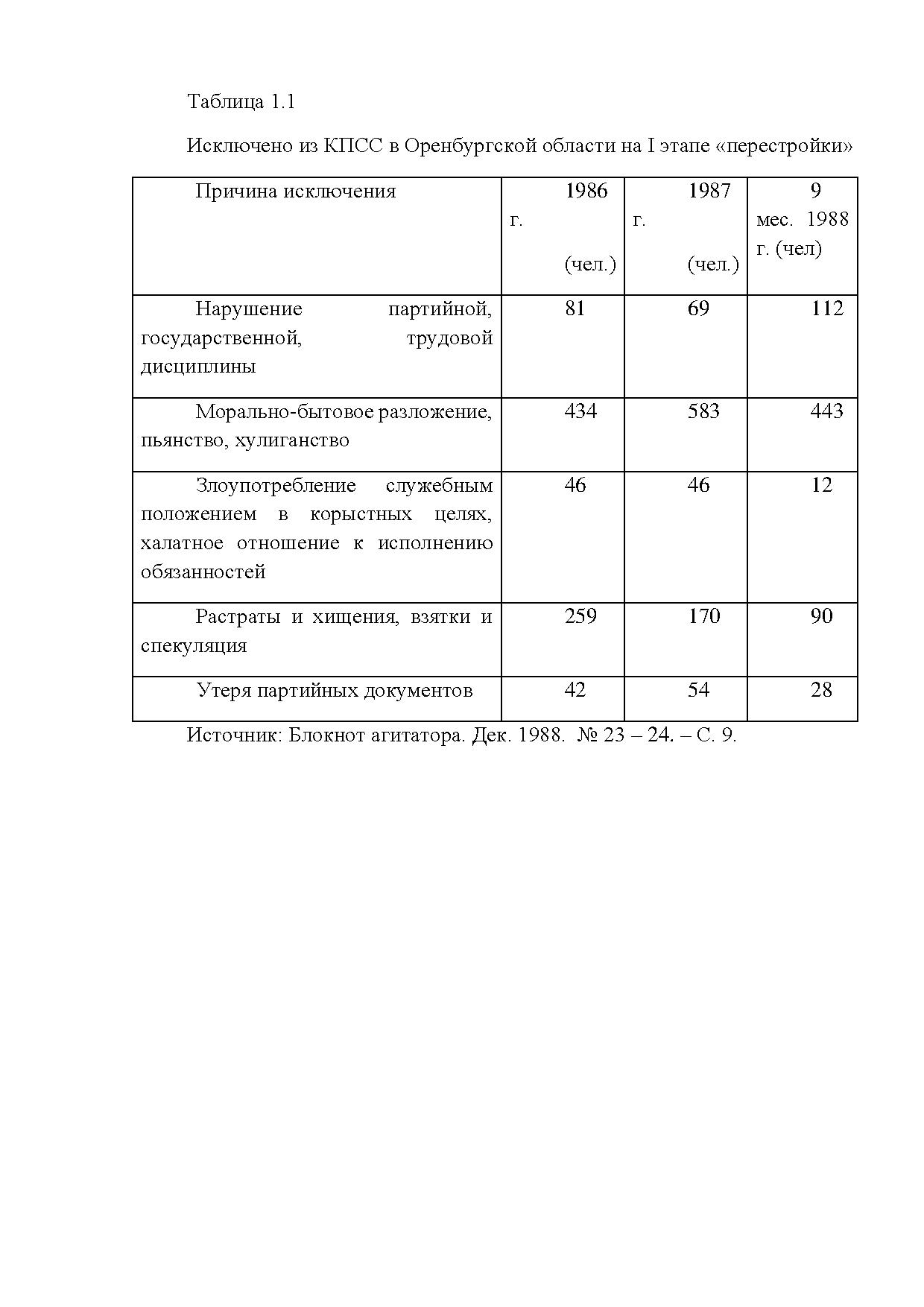 С энтузиазмом были восприняты такие конкретные меры, как «усиление борьбы за чистый и честный облик коммуниста».126 Вопросы тем «борьбы со служебными злоупотреблениями и другими отклонениями от норм морали», «активизации человеческого фактора», «критики и самокритики»127 были приоритетными и на заседании бюро обкома от 26 мая 1985 г., на XI пленуме оренбургского обкома от 3 января 1986 г.128 и др. Различные партийные воздействия, вплоть до исключения из КПСС, были применены к представителям областной партийной организации, динамику которых мы можем наблюдать в таблице 1.1.