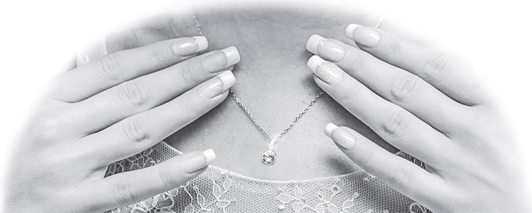 Девушка была уже готова: темный костюм в мелкую серебристую клеточку, высокие каблуки, льняные волосы, собранные тонкими шпильками с искусственными черными камушками на кончиках, – она как всегда была одета изысканно. Оставался последний штрих: модница как раз пыталась застегнуть свою новую цепочку.