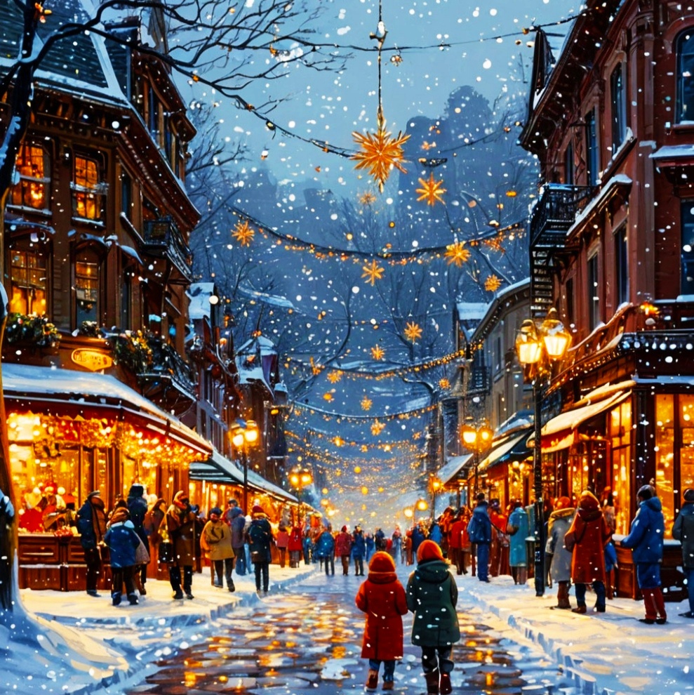 На площадях и в скверах стояли украшенные ёлки, огромные шары на них переливались всеми цветами радуги, а звёзды сияли на макушках, напоминая небесные.