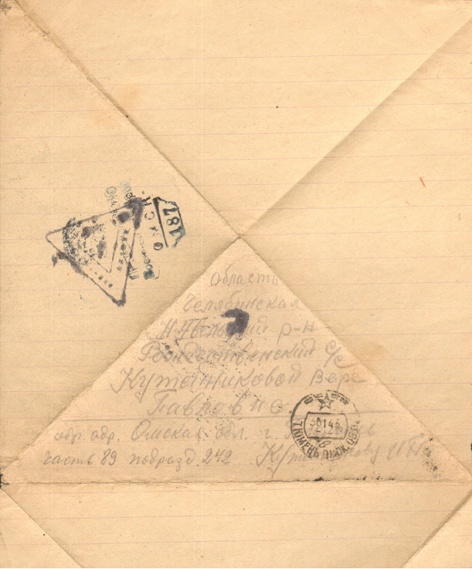 Благодарим челябинцев и жителей области за неравнодушие и отклик, за каждый сохраненный фронтовой треугольник. Письма написаны в окопе между боями, по пути на фронт, в воронке от бомбы, в госпитале. Они адресованы родным и близким не только из городов области – Челябинска, Магнитогорска, Миасса, Карабаша, Троицка, Коркино, Копейска, Верхнего Уфалея, Озерска, – но и из южноуральской глубинки.