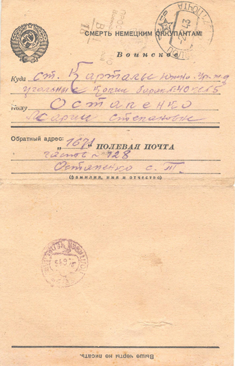 11. Почтовая карточка Семена Терентьевича Остапенко