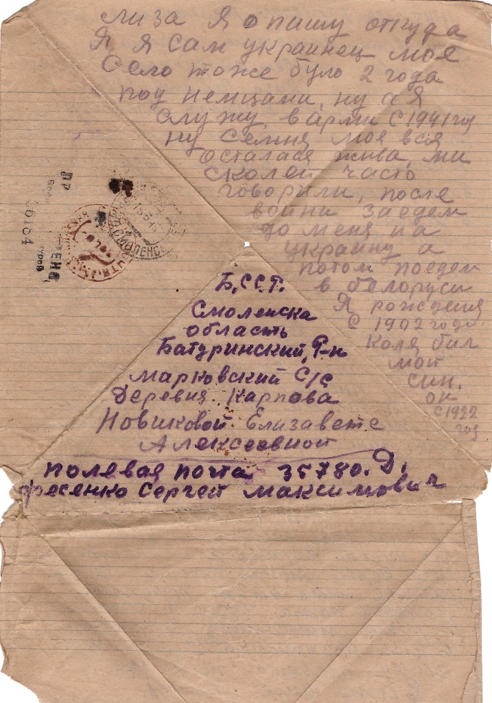 полевая почта 35780. Д. Фесенку Сергею Максимовичу с приветом ваш незнакомый Сергей М Ф