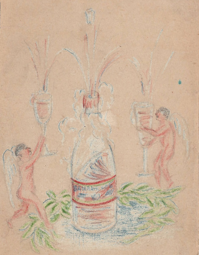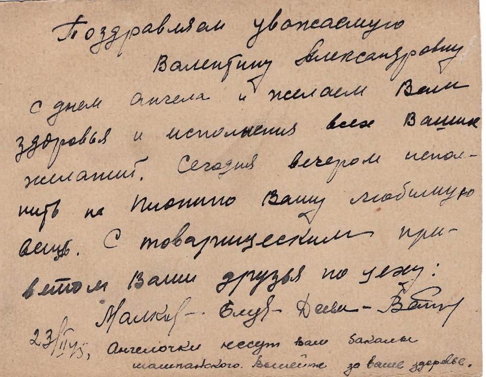 23/II 45 г. Ангелочки несут вам бокалы шампанского. Выпейте за ваше здоровье.