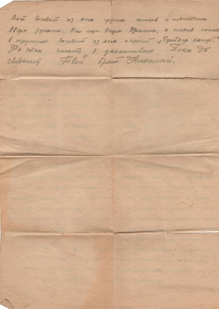 На этом писать я заканчиваю. Пока до свидания Твой брат Николай.