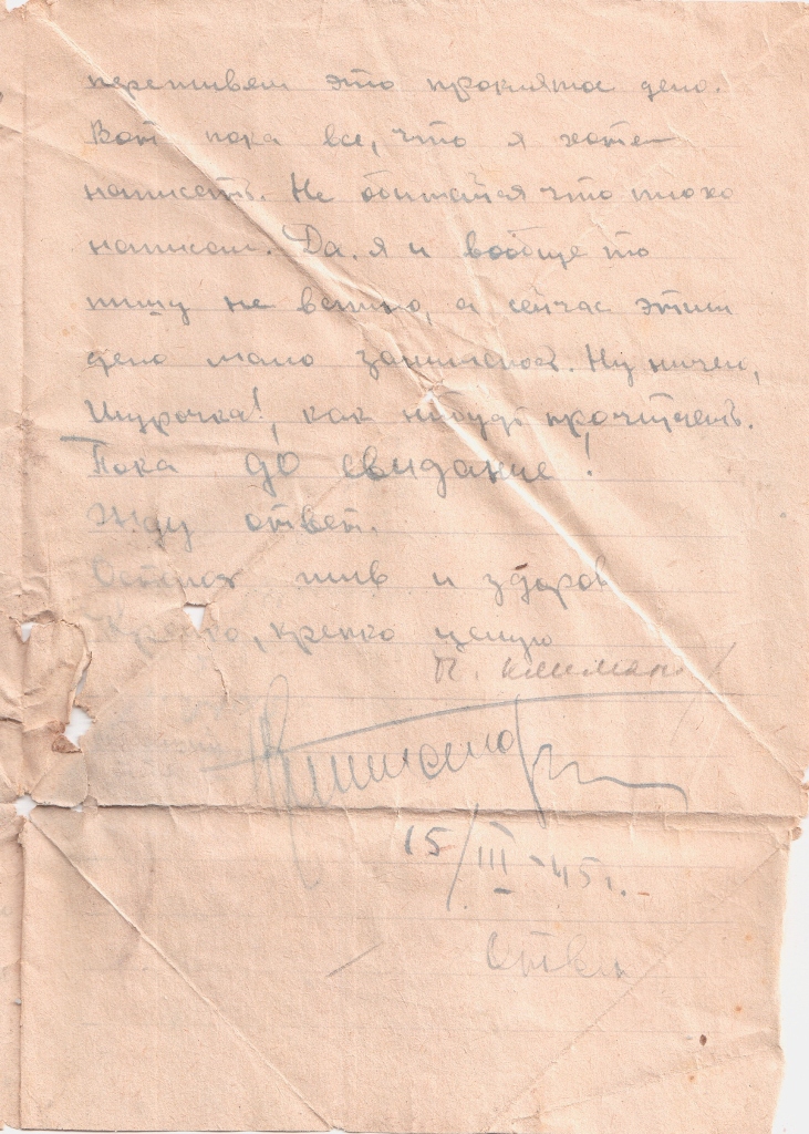 Дата отправления письма – 15 марта 1945 г.