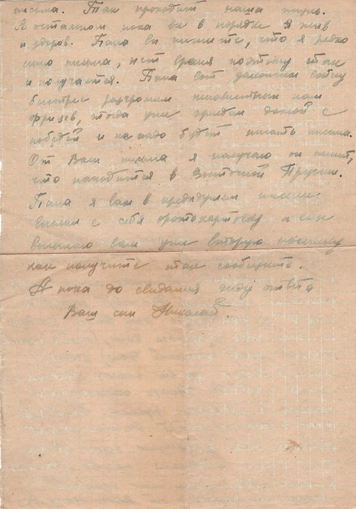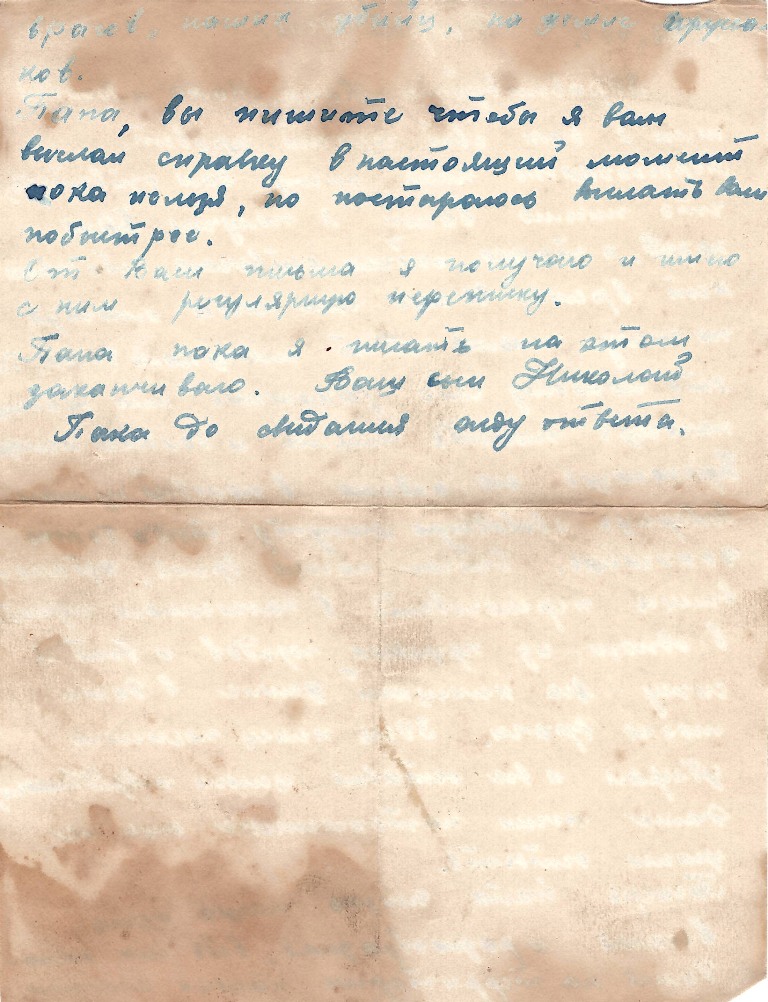 Папа пока я писать на том заканчиваю. Ваш сын Николай.