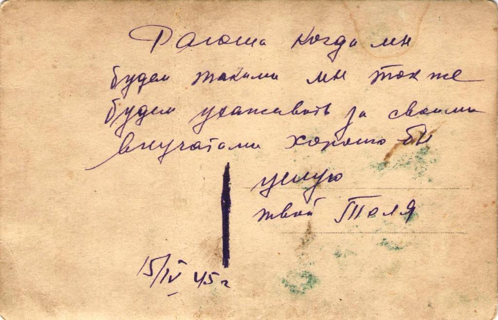 Дата отправления письма – 15 апреля 1945 г.